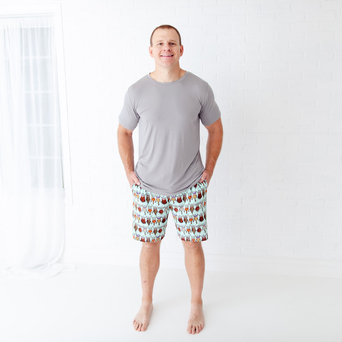 Dream of cooler Nordic nights with this pair! This matching set is sure to become one of your favorites to wear on hot summer nights with its fun Viking print and matching gray top, both of which will keep you cool and comfortable as you slumber.